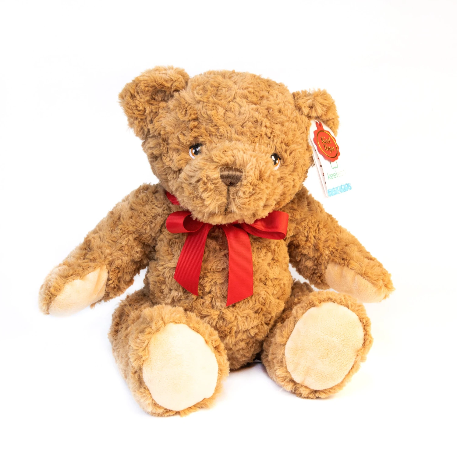 Send a hug with this super soft teddy bear. As well as looking adorable in his red bow, this bear is from Keel Toys Eco range and ismade of 100% recycled polyester from plastic waste. He is weighted with recycled glass beads for that all important floppy huggable bear factor.