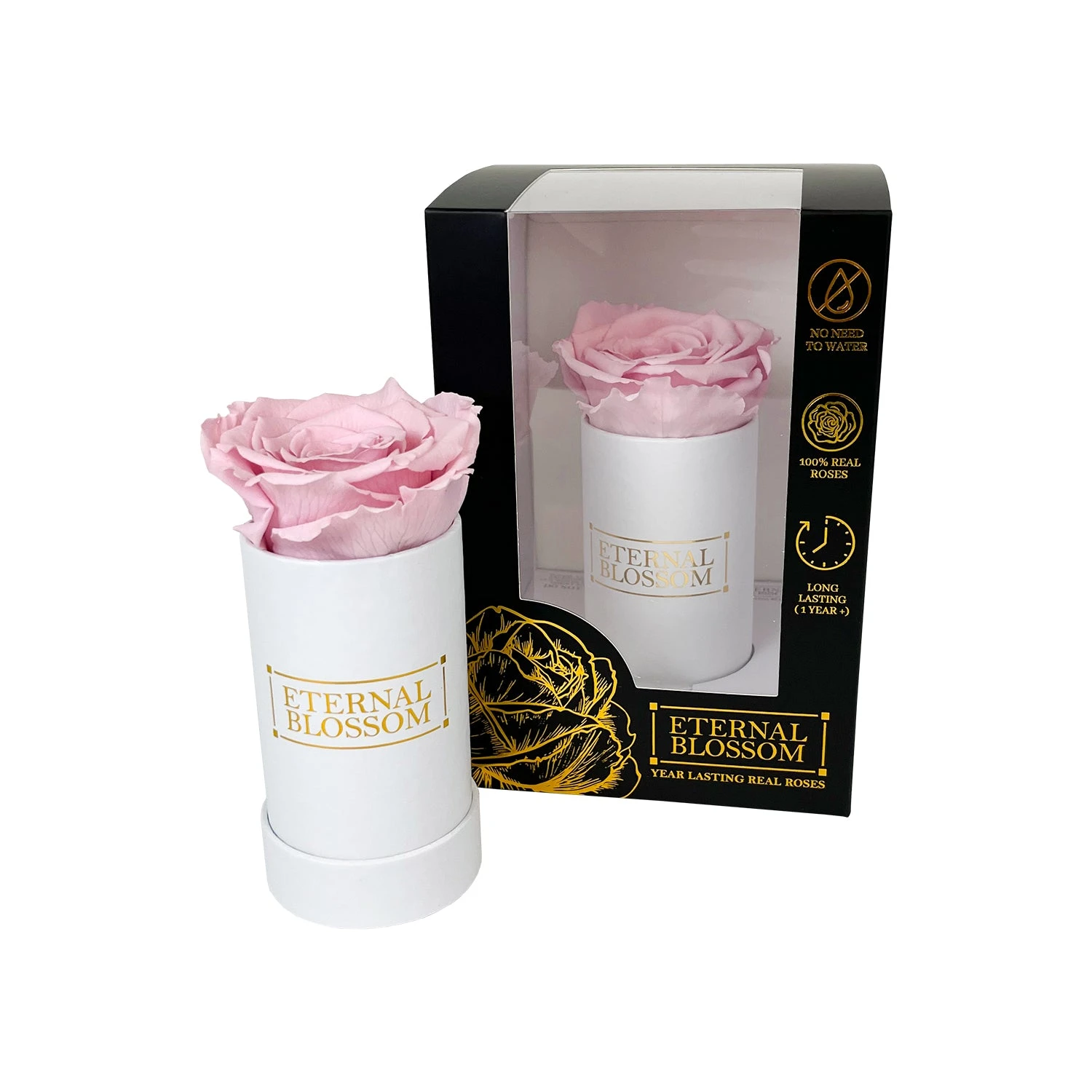 - 1 Beautiful infinity vintage pink rose situated within an elegant white box