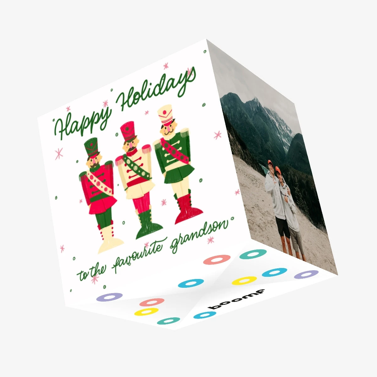 Check out Happy Holidays Favourite Grandson Toy Soldiers Christmas Confetti-exploding Greetings Card, get it personalised with your images and delivered.