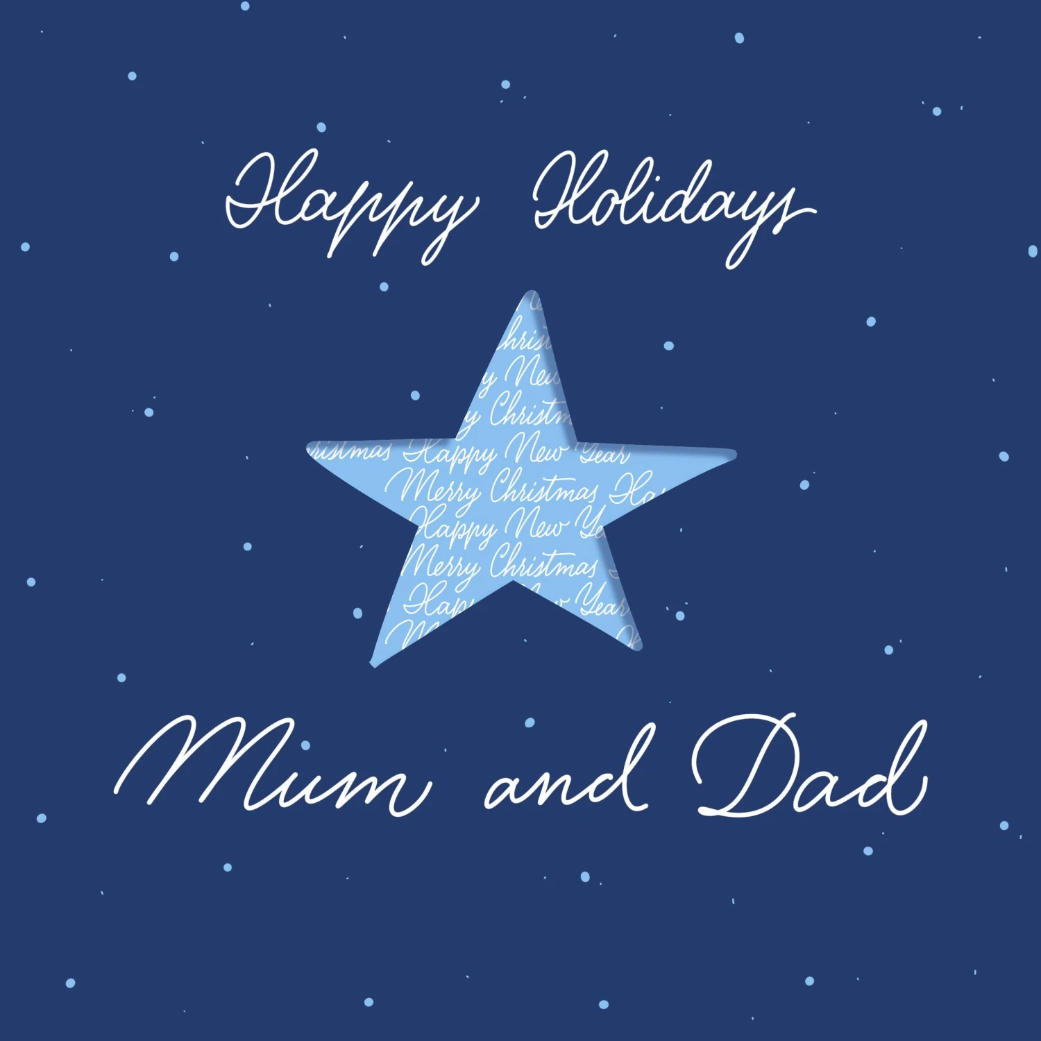 Check out Happy Holidays Mum And Dad Blue Star Confetti-exploding Greetings Card, get it personalised with your images and delivered.