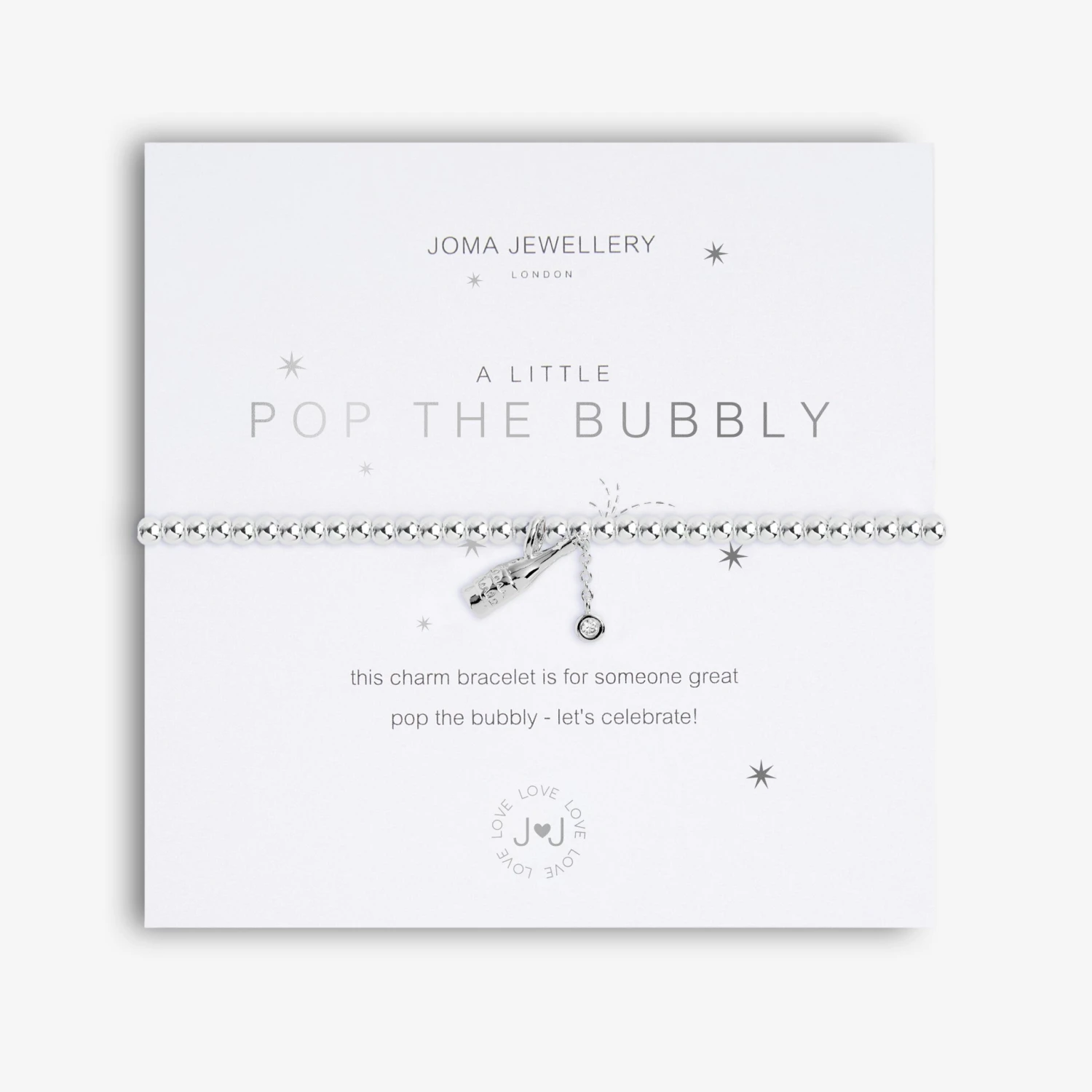 Delight your special someonewith thisgorgeous Little ‘Pop The Bubbly’ Bracelet. This is the perfect gift for someone you want to spoil, without needing a reason! Also ideal for Christmas, Birthdays and Congratulations. The design is crafted from silver-plated metal and is presented on a card.