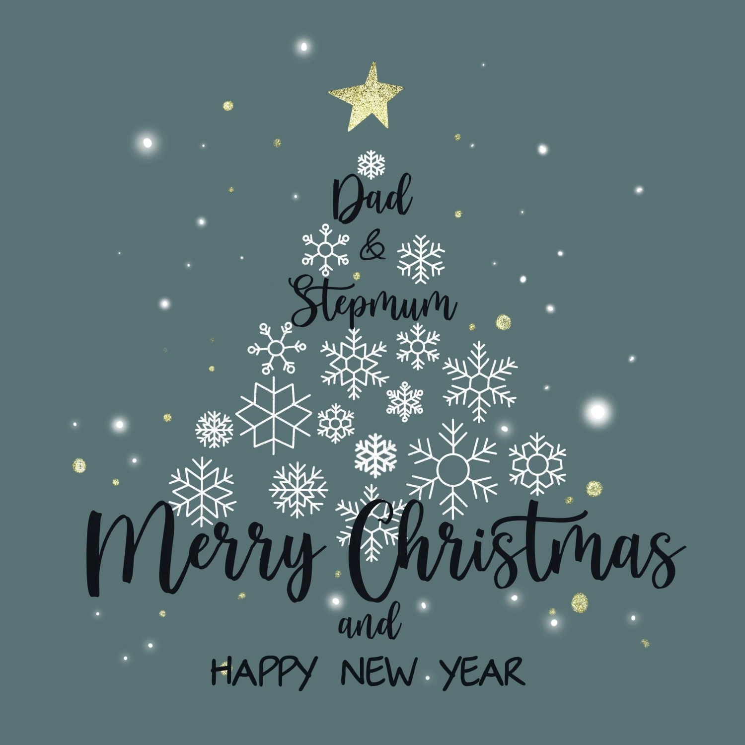 Check out Mery Christmas And Happy New Year Dad And Stepmum Christmas Tree Made Of Snowflakes Confetti-exploding Greetings Card, get it personalised with your images and delivered.