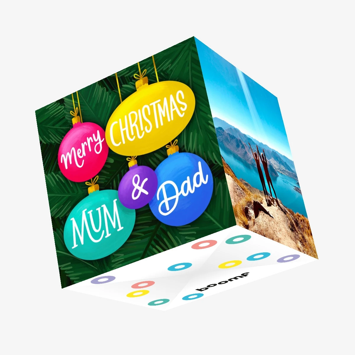 Check out Mum And Dad Baubles Christmas Confetti-exploding Greetings Card, get it personalised with your images and delivered.