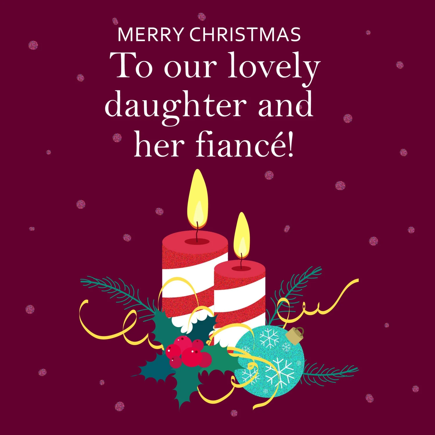 Check out Merry Christmas Our Lovely Daughter And Her Fiance Candles And Mistletoe Confetti-exploding Greetings Card, get it personalised with your images and delivered.