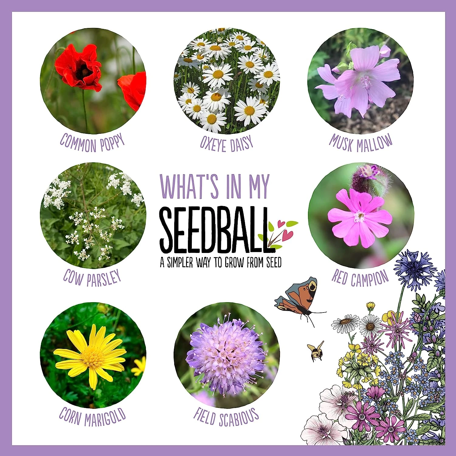 The easy way to grow beautiful native wildflowers. Seedballs are a mini ecosystem, protecting your seeds from birds, ants and slugs and giving them nutrition as they germinate and grow. The wildflower seeds are encased in clay and peat-free compost. Simply scatter onto bare soil or compost on a garden bed or in a pot.